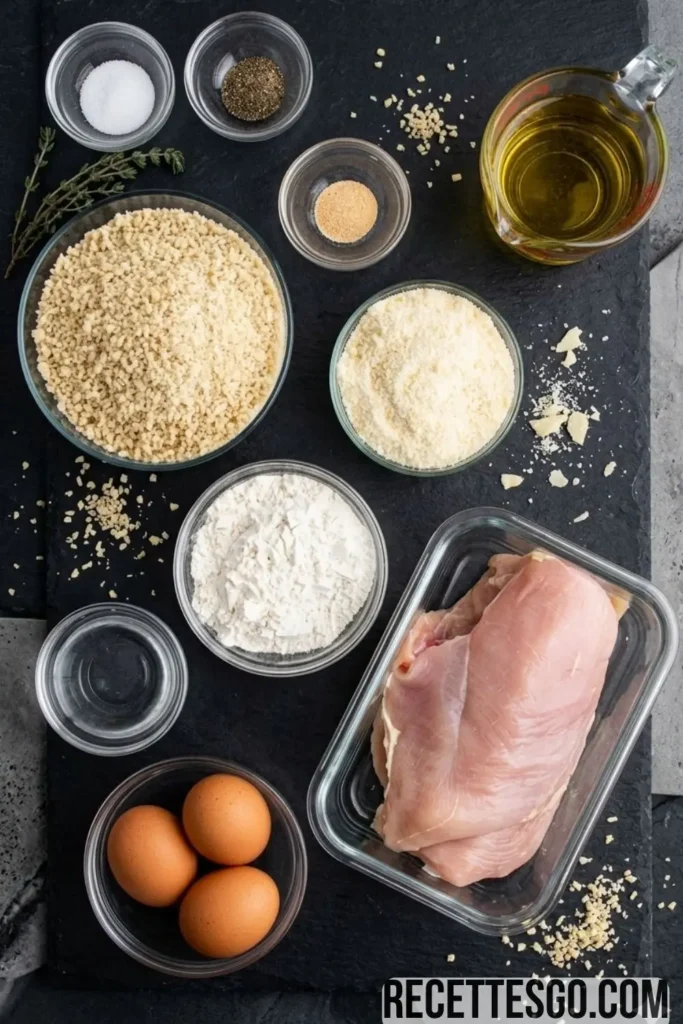 Here’s the thing about this chicken cutlets recipe — there’s a really good chance you have most of this already sitting in your kitchen right now. The star of the show is 2 pounds of boneless skinless chicken breasts, which you’ll fillet and pound into about 8 thin pieces. Beyond that, it’s all very normal pantry territory.