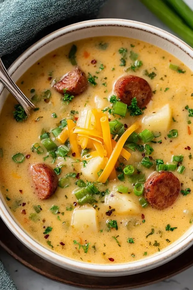 One of my favorite things about this soup is the texture. You’ve got tender potatoes that practically melt in your mouth, little pops of sausage in every spoonful, and just enough cream to tie it all together into something silky and comforting.
