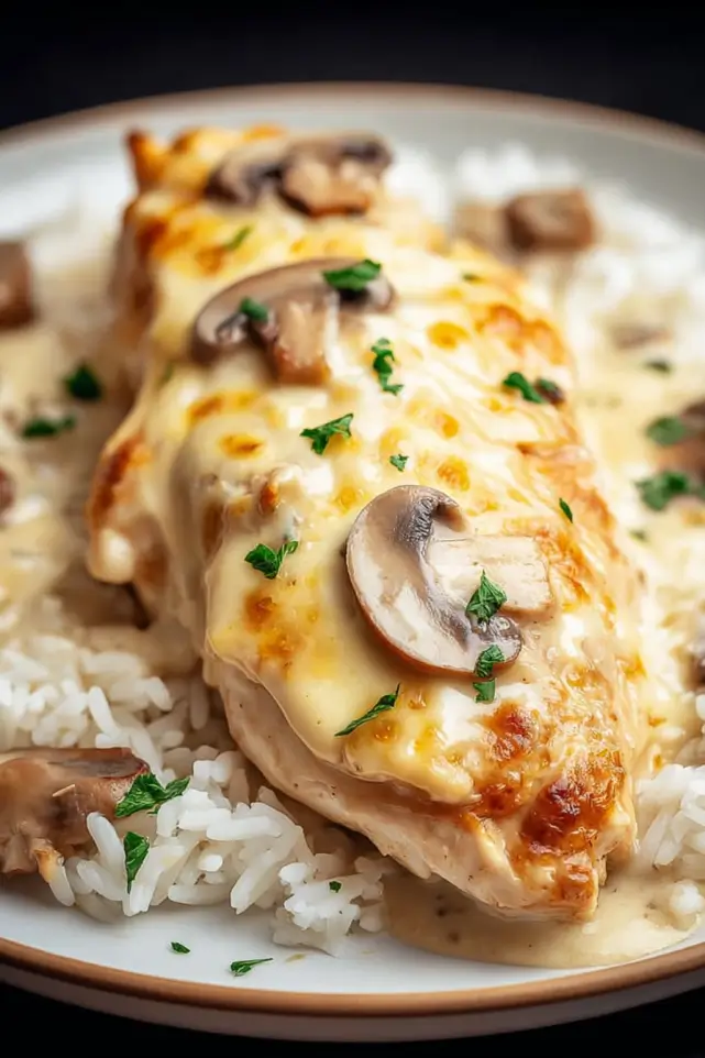 Between the tender chicken, the earthy mushrooms, and that silky cream sauce that basically begs you to grab a spoon, it’s the kind of meal you start thinking about long before dinnertime. Plus, there’s melty Swiss cheese involved. And honestly, anytime cheese melts into a sauce, you know things are about to get emotionally healing.