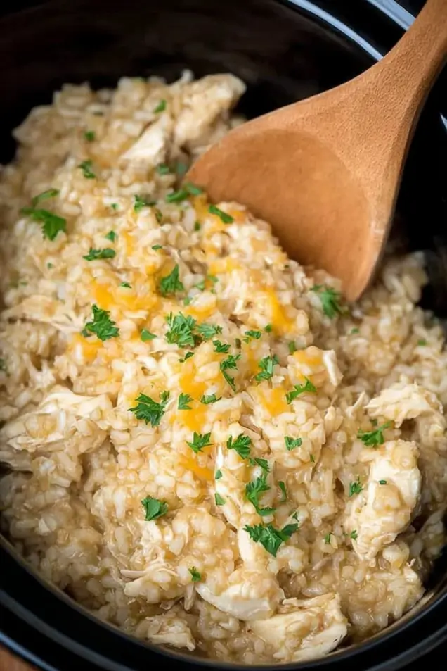 One of the things people sometimes notice with this chicken and rice crock pot dish is that the consistency can vary depending on your specific slow cooker, the brand of rice you used, or even the humidity in your kitchen. Weird but true — slow cookers are a little unpredictable like that.