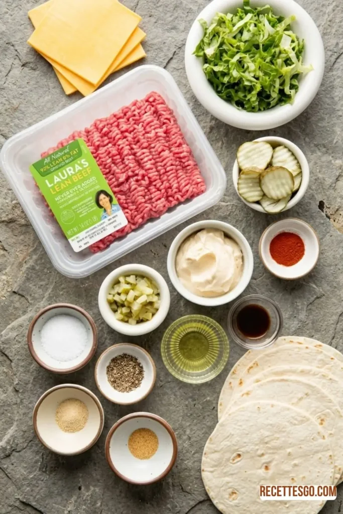 - • Pickle swap: Pickle relish works as a direct substitute for chopped pickles in the burger sauce. • Gluten-free: Use certified gluten-free or grain-free tortillas in place of standard flour tortillas. • Dairy-free: Swap in your favorite plant-based cheese slices, or simply skip the cheese altogether — the sauce and toppings still carry plenty of flavor. • Bigger batch: If using a large cast-iron griddle on the stovetop, you may be able to cook 2 or more tacos at once depending on the size of your cooking surface.