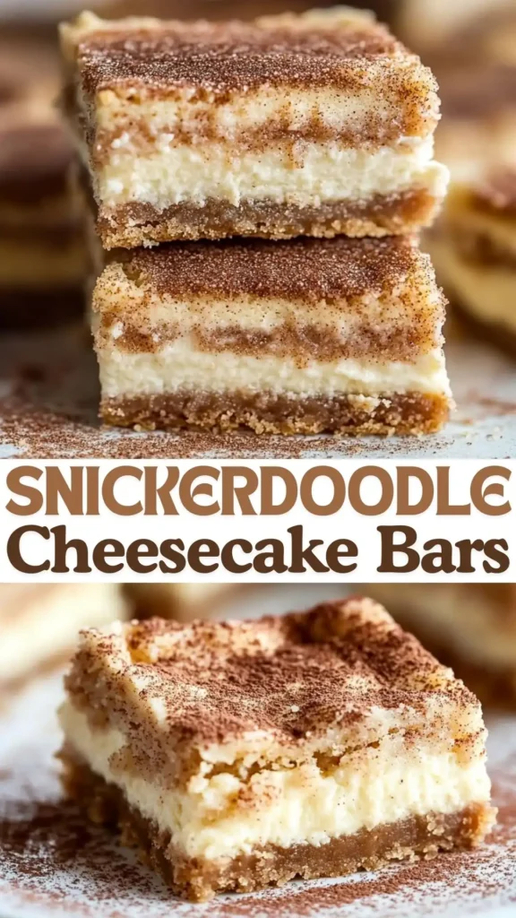 This recipe isn’t just delicious—it’s a surefire way to impress your family, friends, or guests. The layers of cinnamon, creamy cheesecake, and buttery crust come together beautifully in every bite. Whether you’re baking for a special occasion or treating yourself, these Snickerdoodle Cheesecake Bars are bound to become a go-to favorite.