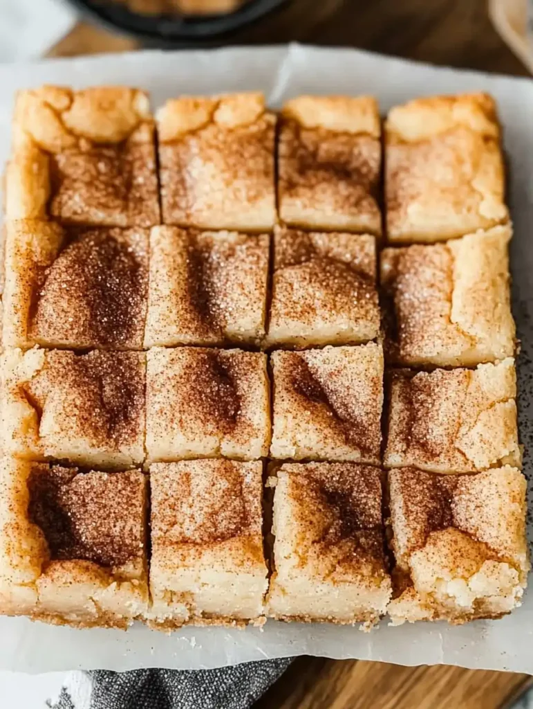 In a small bowl, mix the sugar and cinnamon. Sprinkle this mixture generously over the top of the snickerdoodle dough. - Bake the Bars